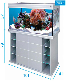 Габариты аквариума: 101 см x 41 см x 57 см.