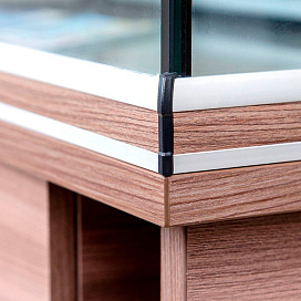 - Прочность и долговечность. Верхний периметр крышки и нижняя рамка сделаны из анодированного алюминиевого профиля. Качественный анодный слой не оставляет следов от прикосновений и имеет равномерную матовую текстуру. Главное преимущество анодного слоя в том, что он не подвержен коррозии. Аквариум с отделкой из анодированного алюминия прослужит Вам еще дольше! Нижняя декоративная рамка аквариума обеспечивает правильное распределение нагрузки на подставке, что позволяет не использовать никаких подкладочных материалов при установке аквариума на подставку. Цветные вставки на аквариуме можно легко менять, это пригодиться при смене интерьера.