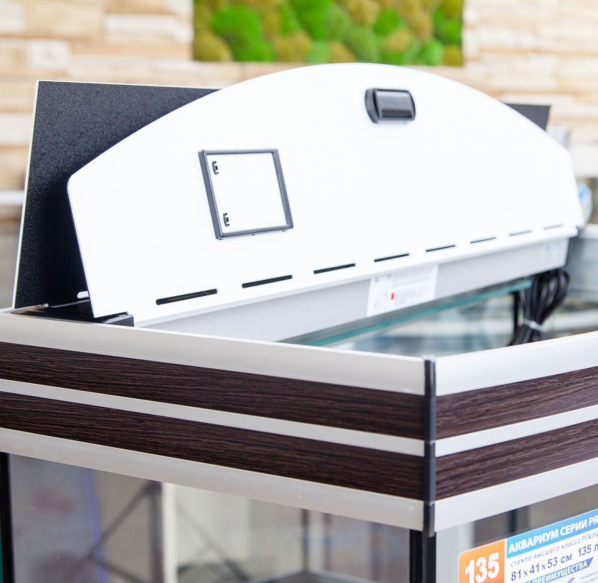 - Простота обслуживания. Крышка аквариумов Биодизайн оснащена двумя покровными крышками (створками). При обслуживании аквариума Вам не придется искать место, куда положить крышки, они легко открываются и фиксируются в вертикальном положении. Створки полностью съемные. Светильник отодвигается, открывая достаточно места для обслуживания. Выключать свет при этом не требуется, так как светильники полностью гидроизолированы и абсолютно безопасны. Это позволит Вам работать в хорошо освещенном аквариуме.