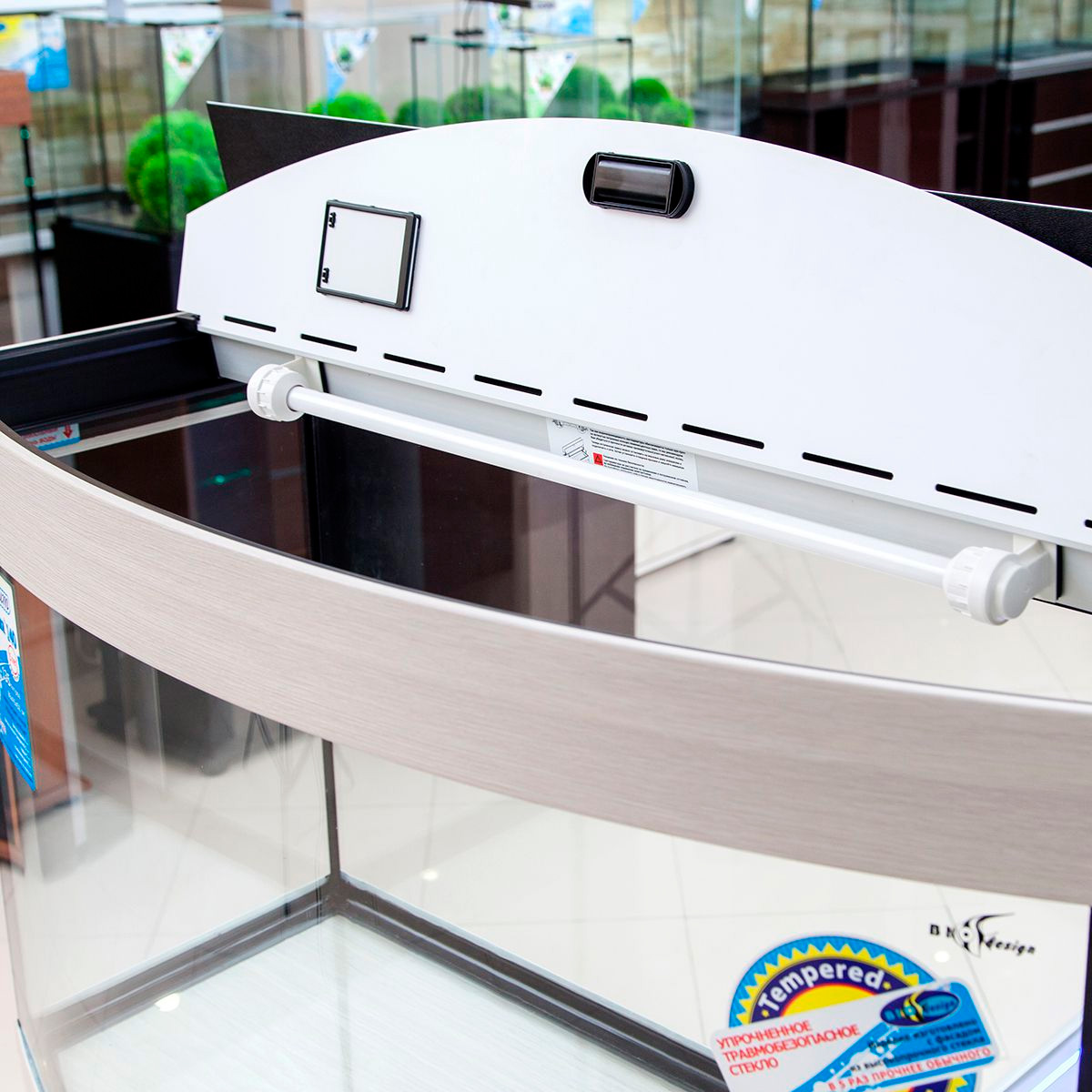 - Прочность и долговечность. Верхний периметр крышки и нижняя рамка сделаны из прочного экструзионного профиля ПВХ производства Biodesign. Этот материал не подвержен старению, химически нейтрален и устойчив к агрессивной влажной среде. Нижняя декоративная рамка аквариума обеспечивает правильное распределение нагрузки на подставке, что позволяет не использовать никаких подкладочных материалов при установке аквариума на подставку. Цветные покрытия профиля вплавлены в материал, не отслаиваются и не выцветают даже при попадании прямых солнечных лучей, они устойчивы к деформациям и легко моются обычными бытовыми моющими средствами.