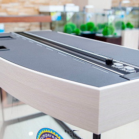 - Простота обслуживания. При обслуживании аквариума Вам не придется искать место, куда положить крышки, они легко открываются и фиксируются в вертикальном положении. Светильник отодвигается, открывая достаточно места для обслуживания. Выключать свет при этом не требуется, так как светильники полностью гидроизолированы и абсолютно безопасны. Это позволит Вам работать в хорошо освещенном аквариуме.