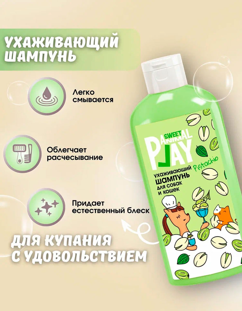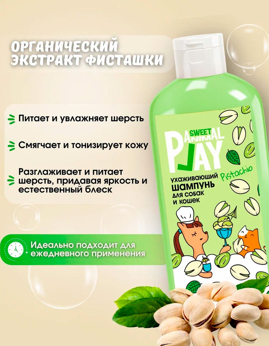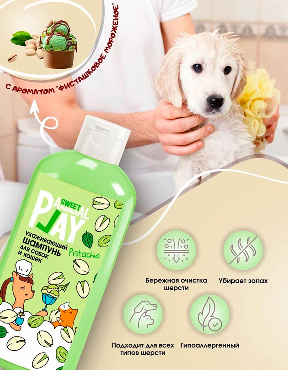 ANIMAL PLAY SWEET шампунь для собак и кошек ухаживающий Фисташковое мороженое (300 мл)
