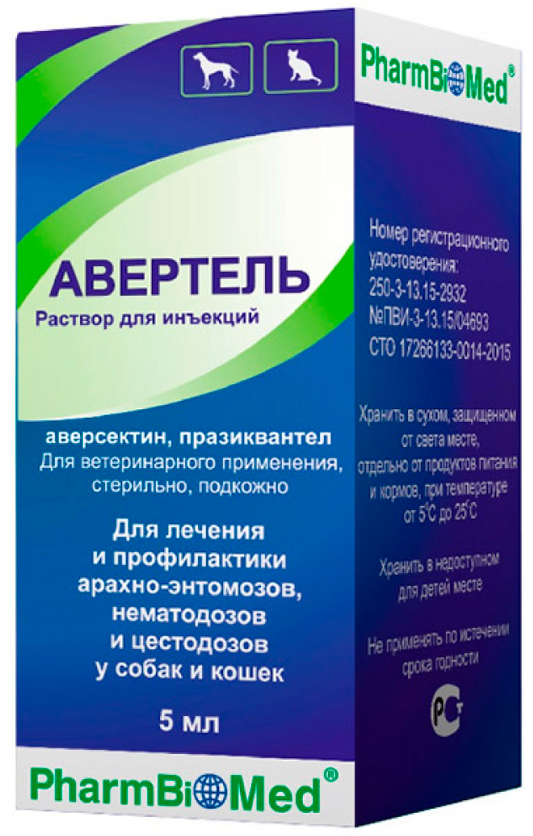 АВЕРТЕЛЬ препарат для лечения и профилактики паразитарных инфекций 5 мл раствор для инъекций (1 шт)