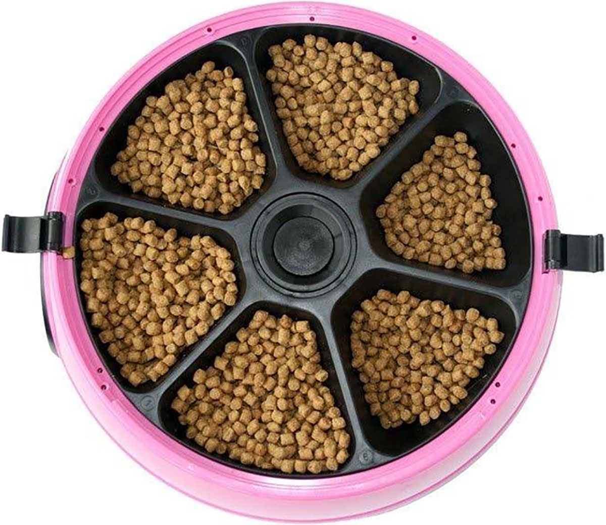 Автоматическая кормушка для кошек и собак на 6 кормлений с ЖК-дисплеем Feed-Ex, розовая (1 шт)