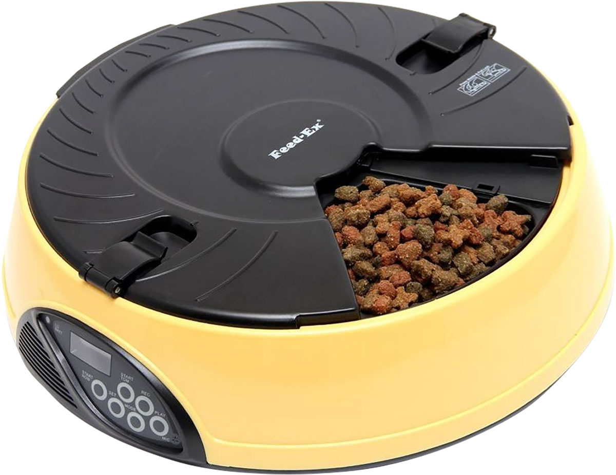 Автоматическая кормушка для кошек и собак на 6 кормлений с ЖК-дисплеем Feed-Ex, желтая (1 шт)