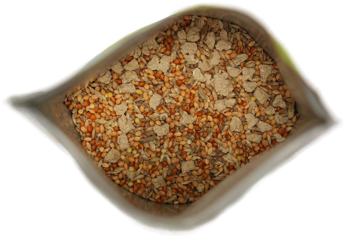 Состав: просо красное, просо желтое, семя канареечное, семена пайзы, витаминное печенье, юкка шидигера, рапс, семена чиа, комплекс пробиотиков, натуральный адсорбент – дрожжи (S.cerevisae).