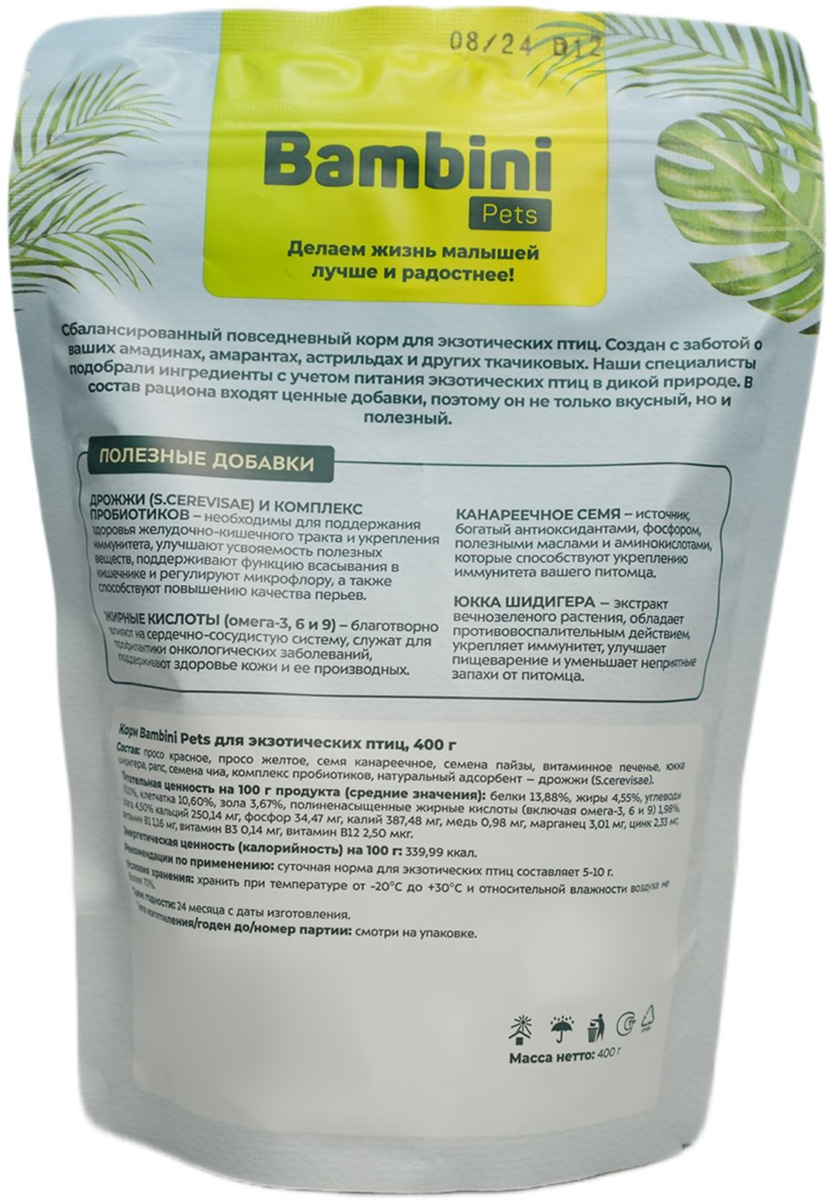 BAMBINI PETS корм для экзотических птиц (400 гр)