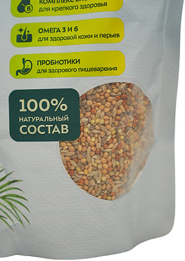 - Подобрали ингредиенты с учётом видовых особенностей питания экзотических птиц в дикой природе.