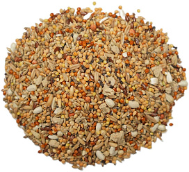 Состав: семя канареечное, просо желтое, просо красное, семена пайзы, овес голозерный, сорго, сафлор, ракушка кормовая, семена льна, рапс, витаминное печенье, юкка шидигера, комплекс пробиотиков, натуральный адсорбент – дрожжи (S.cerevisae).