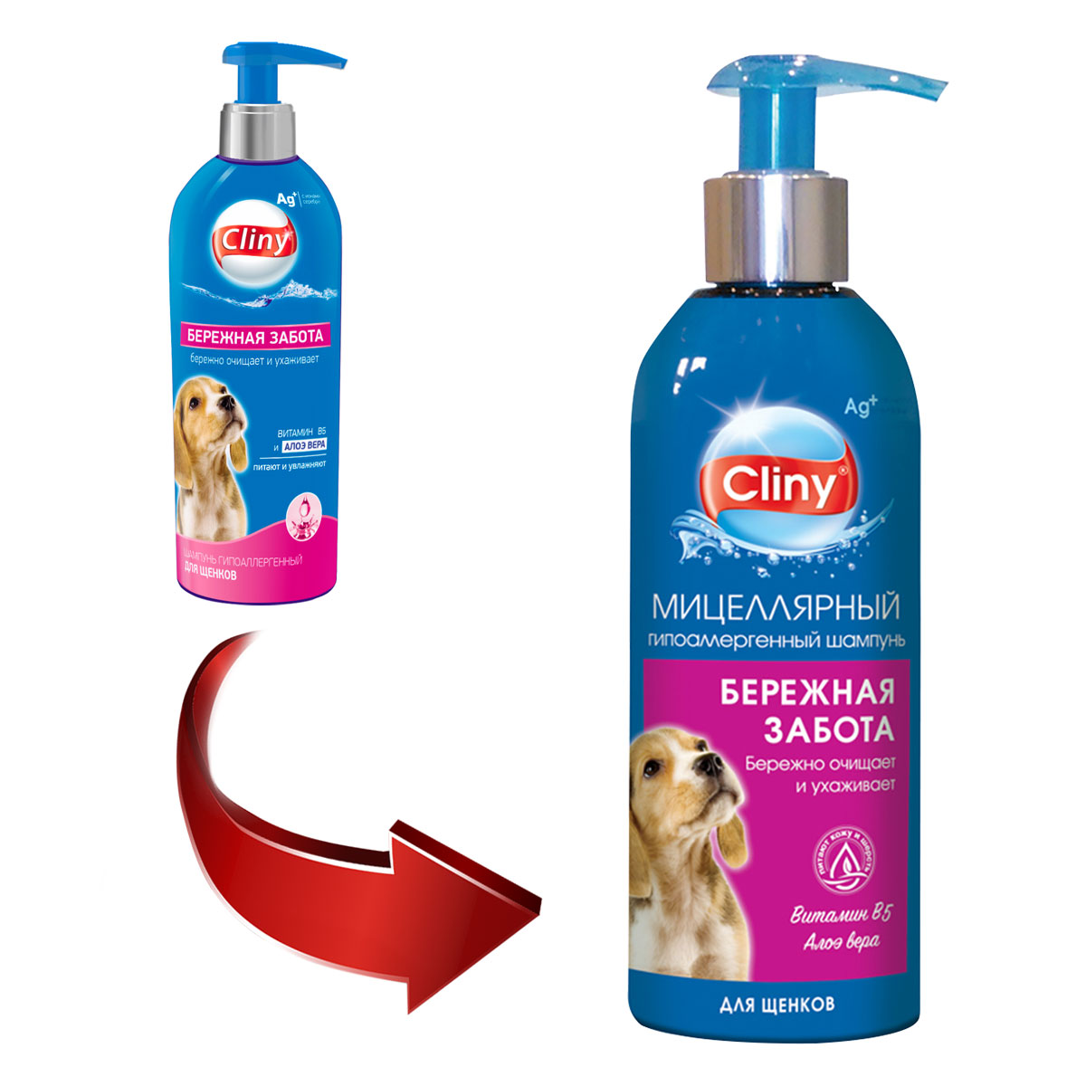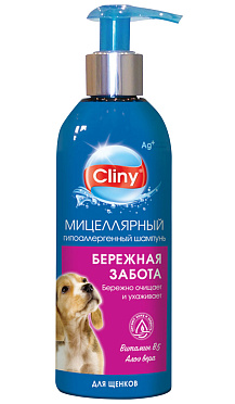 CLINY БЕРЕЖНАЯ ЗАБОТА это шампунь для щенков, созданный для бережного ухода за кожно-волосяным покровом.