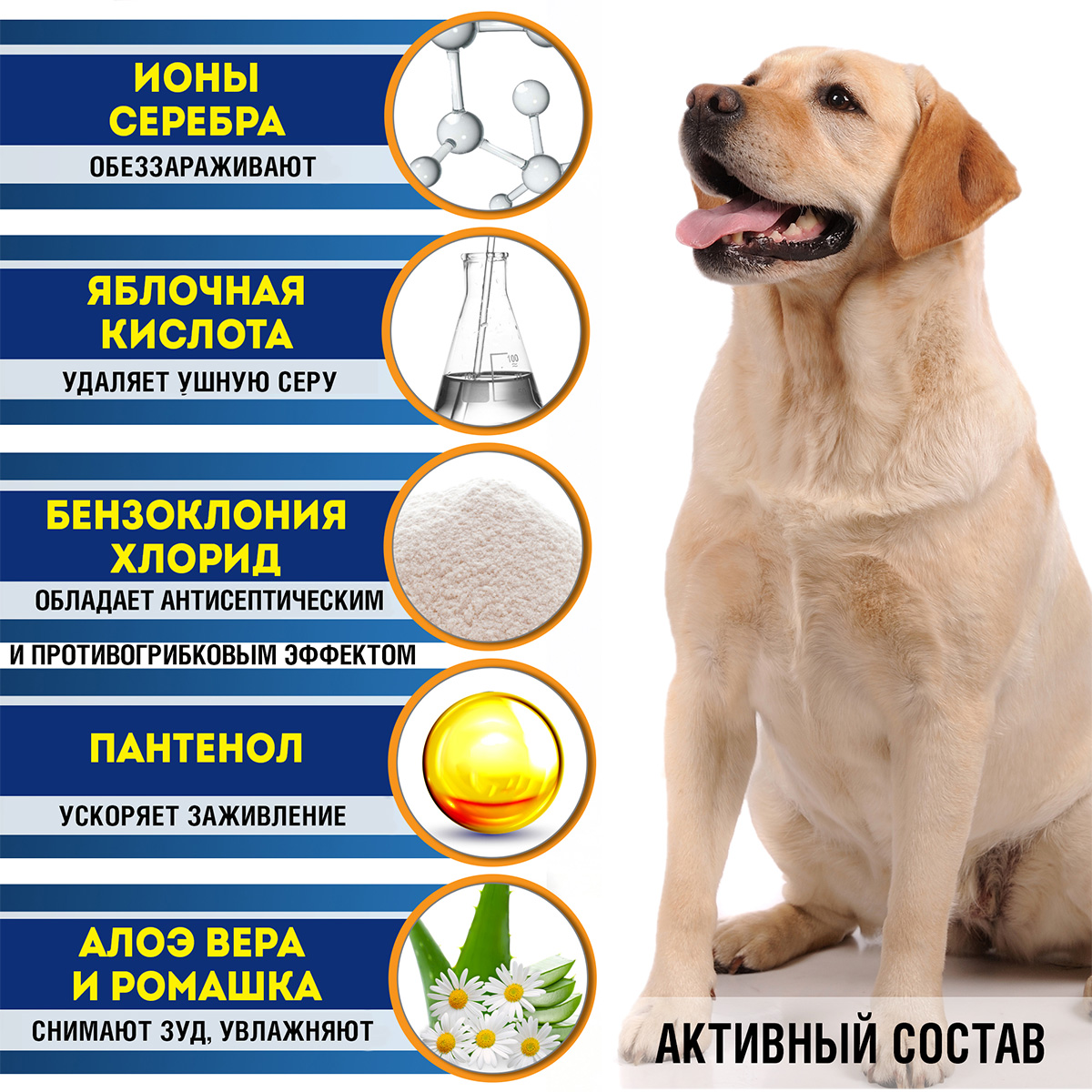 Лосьон для чистки ушей для собак и кошек. Регулярное применение лосьона снижает риск инфекционных заболеваний.