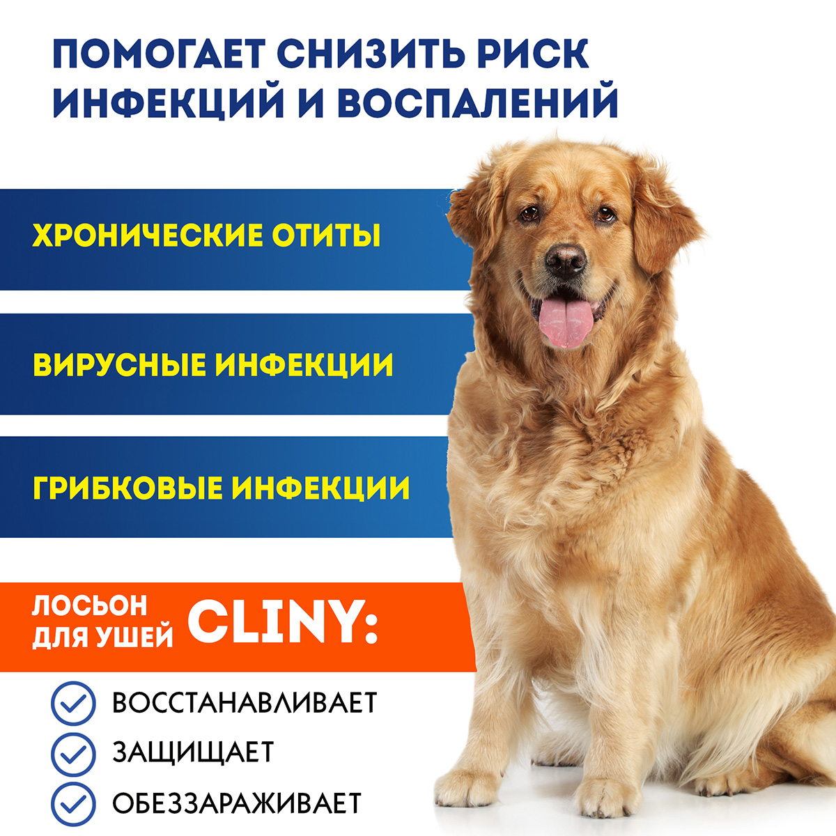 Для ухода за ушами питомца используйте лосьон для ушей Cliny.