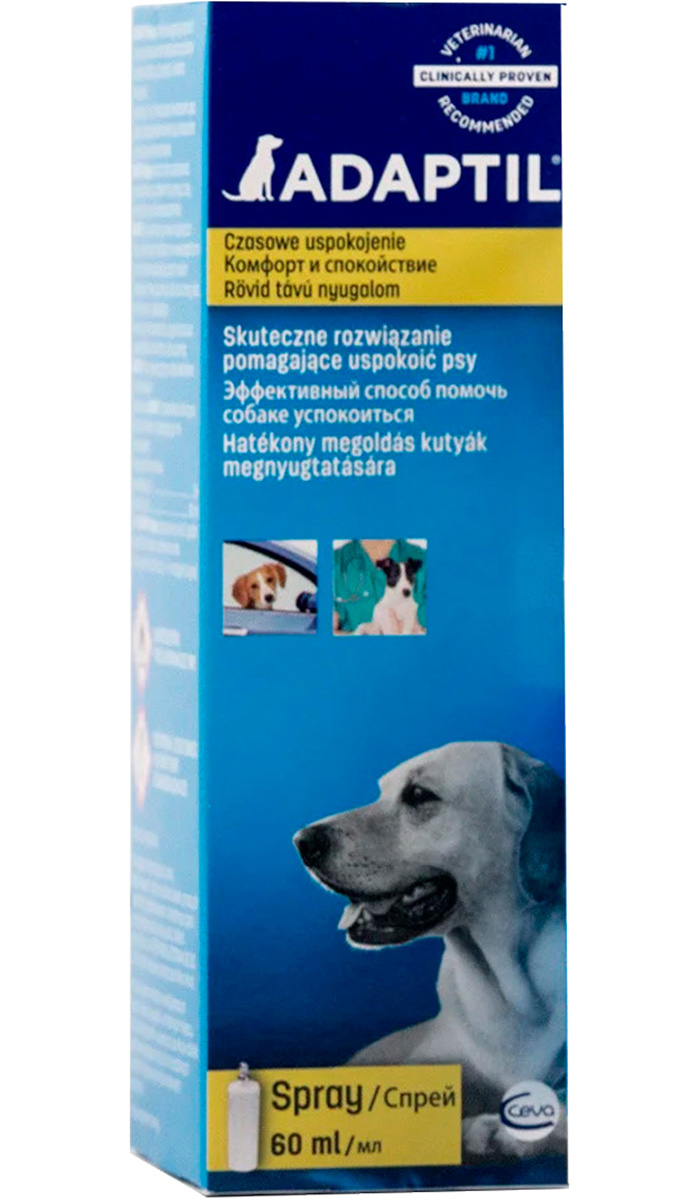 Феромон ADAPTIL в виде спрея — эффективный и безопасный способ восстановить хорошее самочувствие и нормализовать поведение собаки в стрессовой ситуации без применения медикаментов.