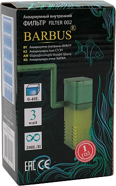 Фильтр внутренний BARBUS FILTER 002 с регулятором и флейтой для аквариума 10 - 40 л, 200 л/ч, 3 Вт (1 шт УЦ)