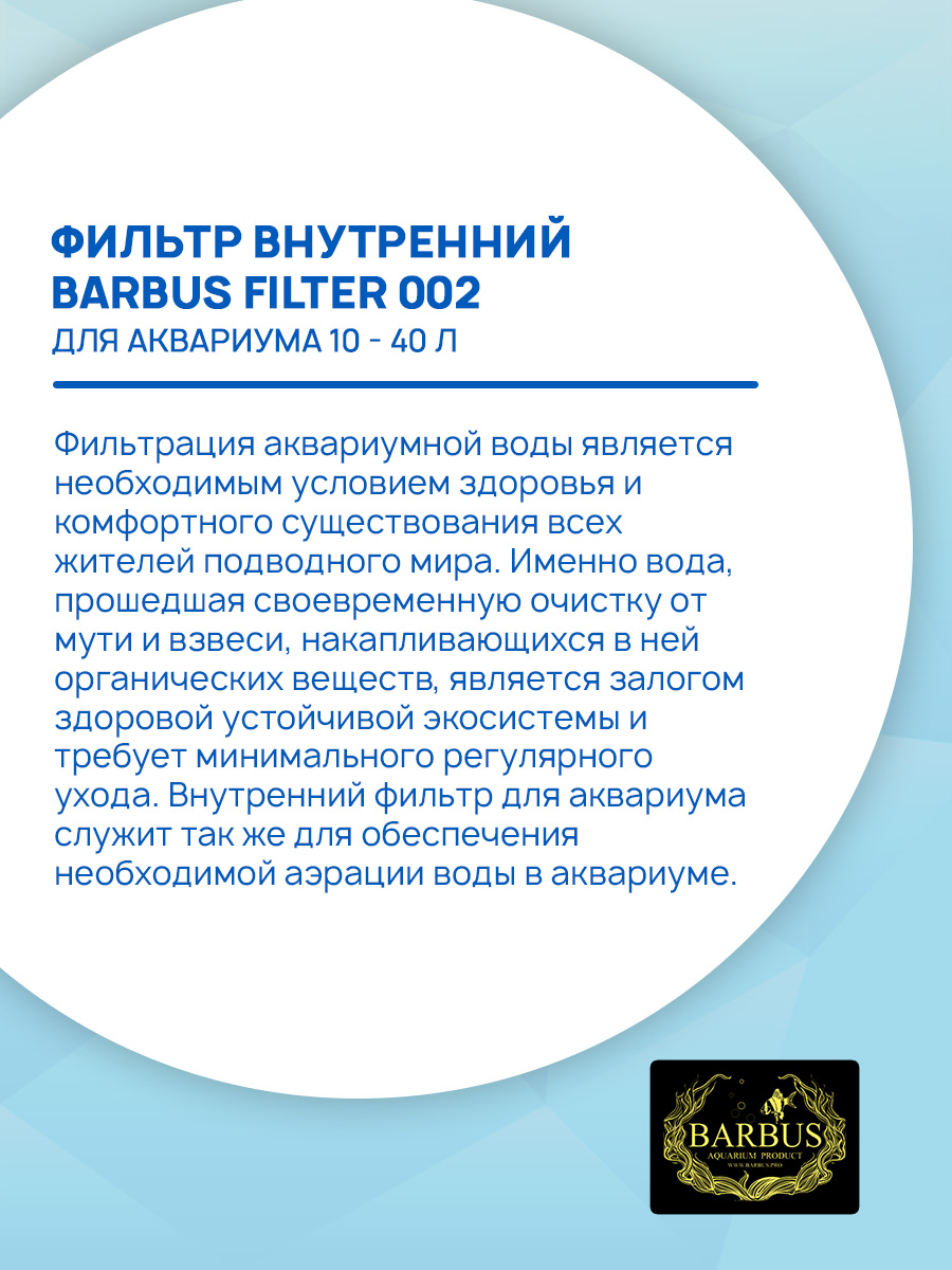 Фильтр внутренний BARBUS FILTER 002 с регулятором и флейтой для аквариума 10 - 40 л, 200 л/ч, 3 Вт (1 шт)