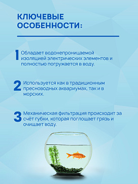 Особенности фильтра для аквариума: механический тип фильтрации, равномерное распределение потока воды, аэрация.