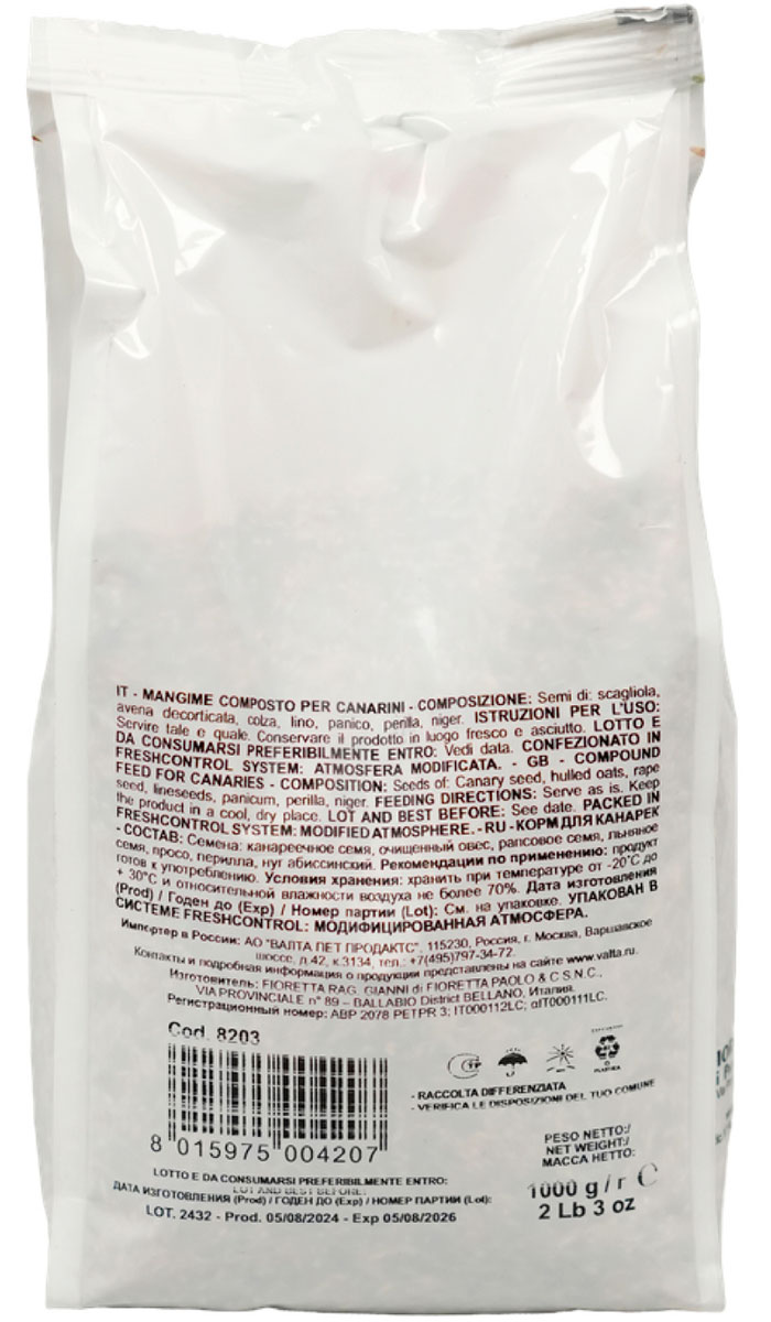 Состав: семена: канареечное семя, очищенный овес, рапсовое семя, льняное семя, просо, перилла, нуг абиссинский.