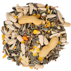 - В состав входят два вида подсолнечника, овёс, пшеница, кукуруза, сафлор, тыквенное семя, арахис.