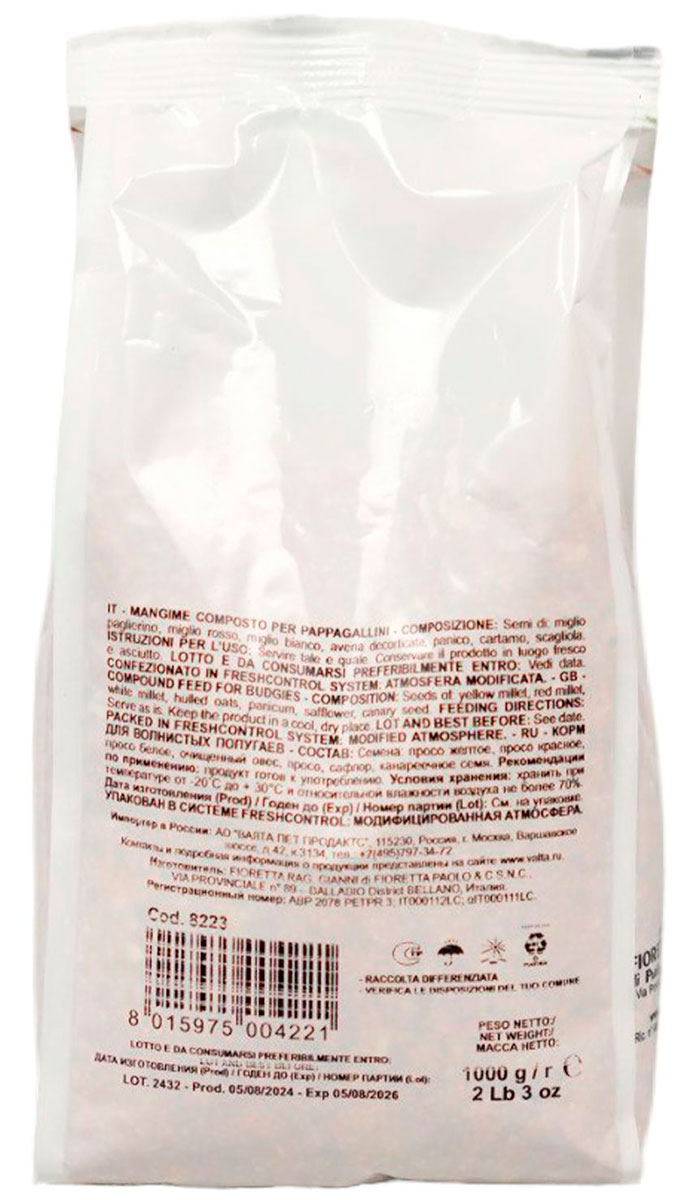 - Корм содержит различные семена, обеспечивающие сбалансированный и разнообразный рацион для волнистых попугаев.