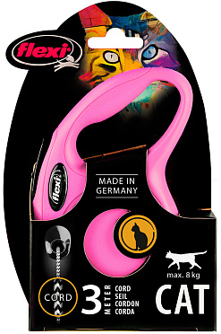 FLEXI NEW CLASSIC CAT CORD тросовый поводок-рулетка для кошек, 3 м, размер XS, розовый (1 шт)Страна-производитель
