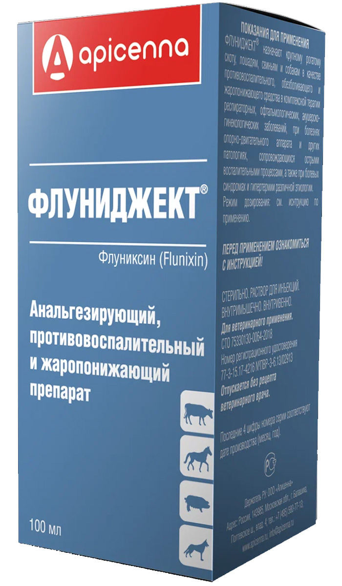 ФЛУНИДЖЕКТ противовоспалительное обезболивающее и жаропонижающее средство для с/х животных 100 мл раствор для инъекций (1 шт)