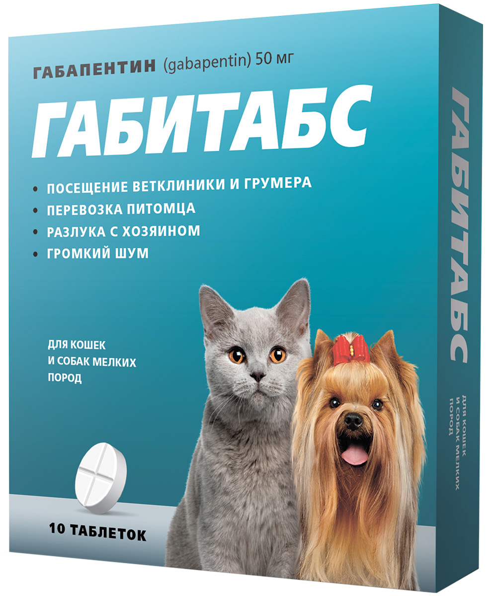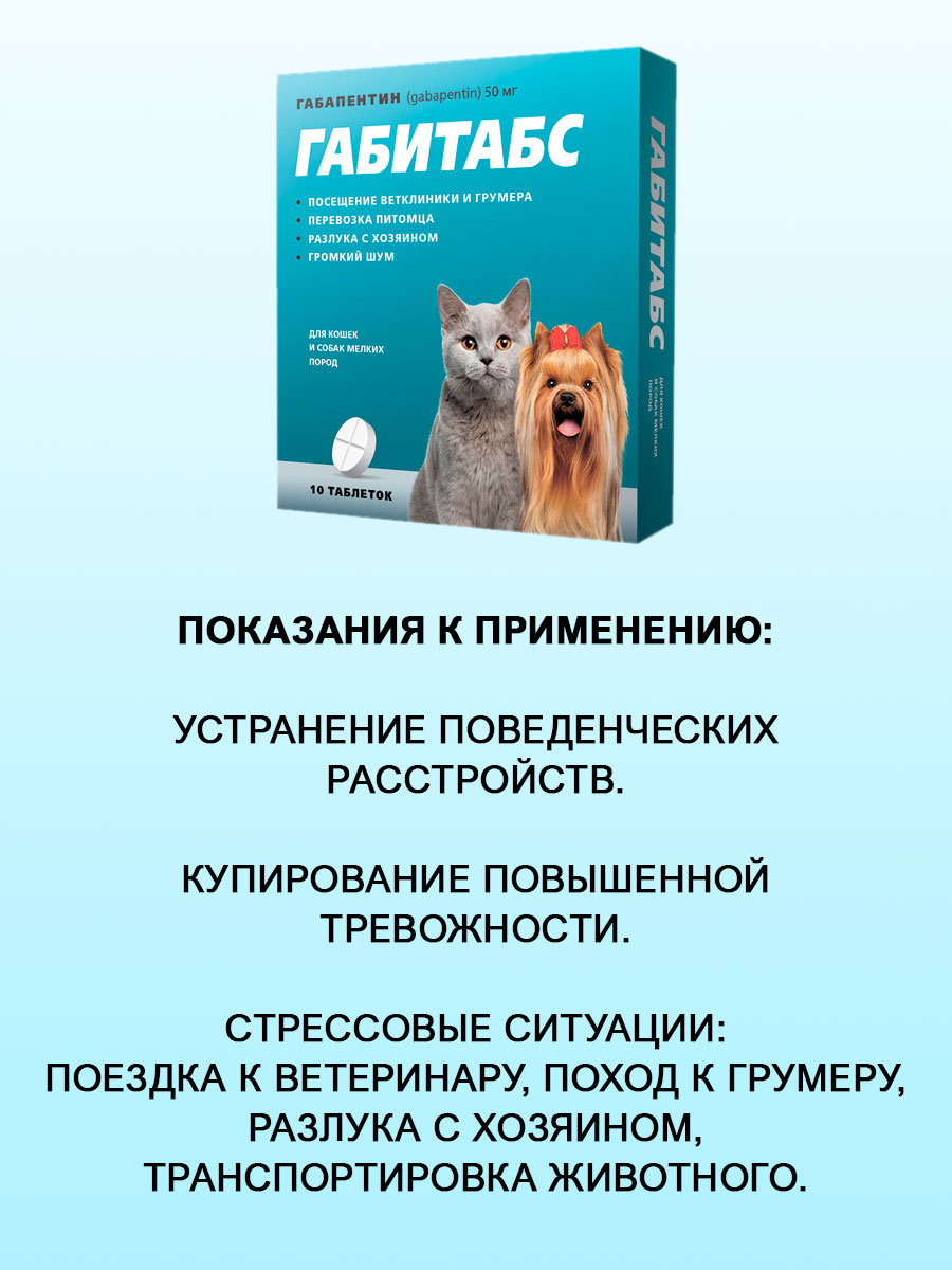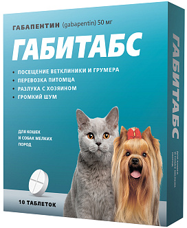 ГАБИТАБС таблетки для собак маленьких пород и кошек для устранения поведенческих расстройств и снижения беспокойства 50 мг уп. 10 таблеток (1 уп)
