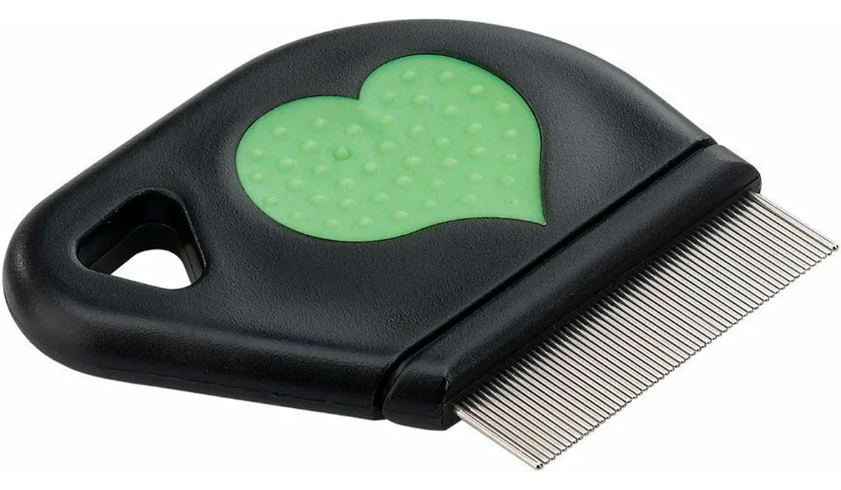 Пластиковый гребень с зубчиками из хромированной стали, для быстрого удаления блох с шерсти короткой и средней длины.
