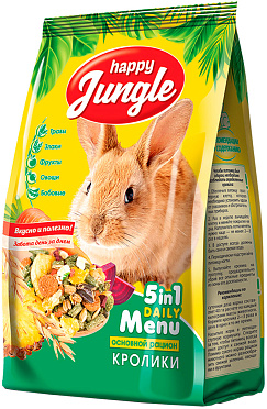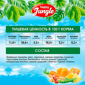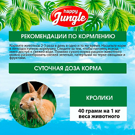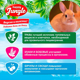Корм HAPPY JUNGLE для кроликов – это сбалансированная смесь из травяных гранул, зерна, овощей и фруктов, которая обеспечит Вашего питомца всеми необходимыми питательными веществами.