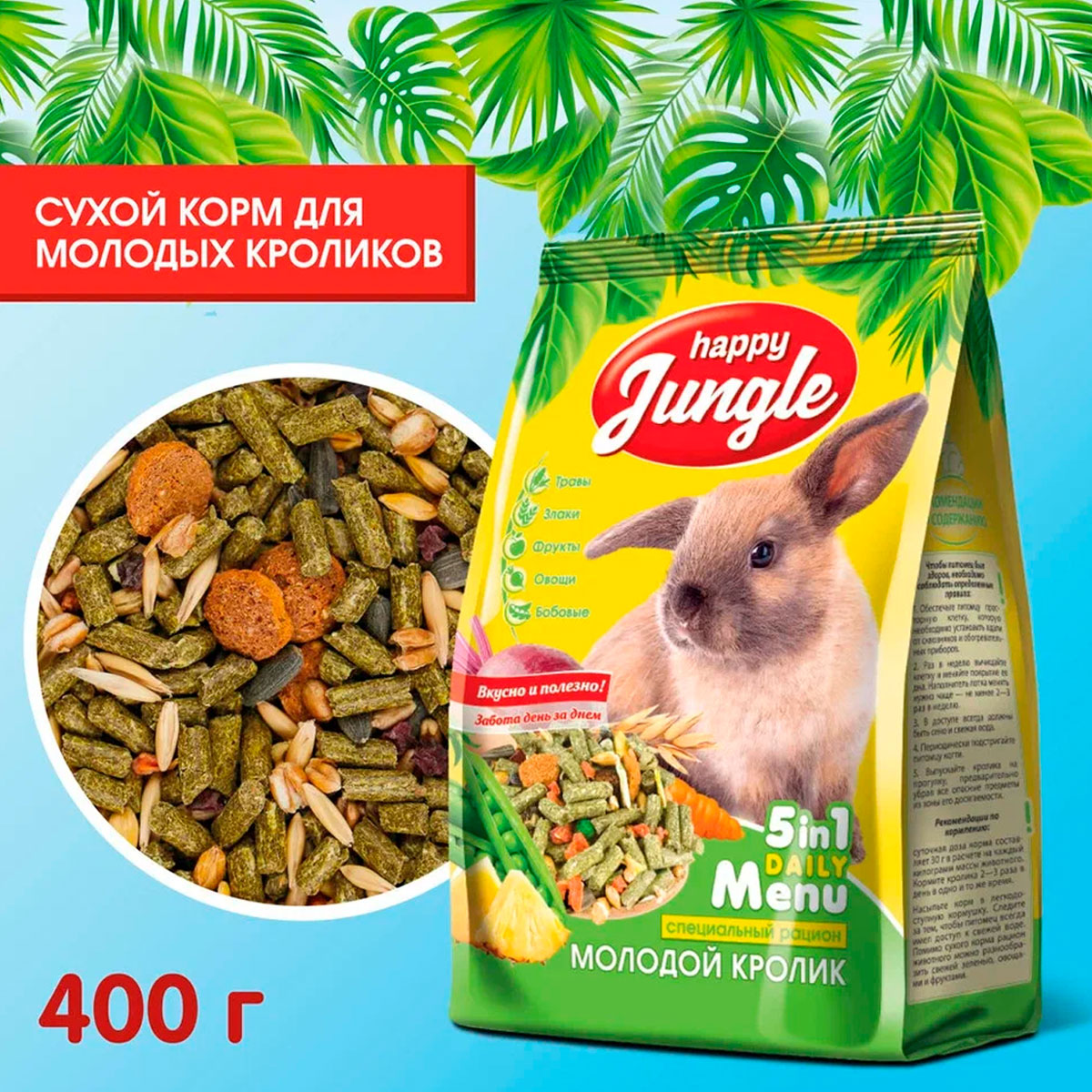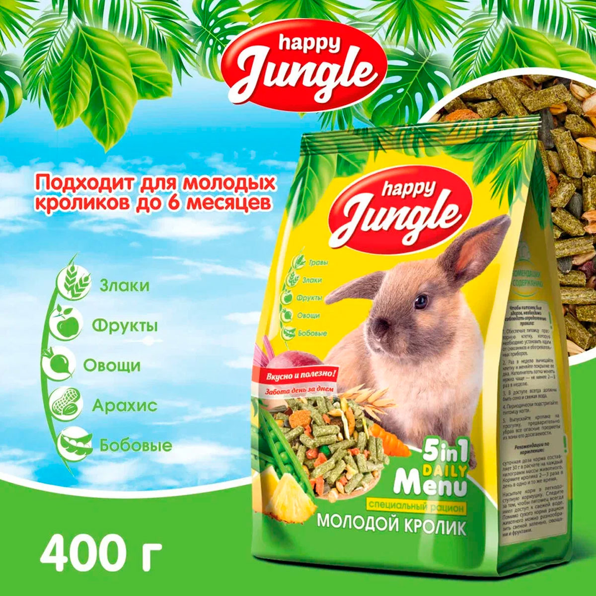 HAPPY JUNGLE для молодых кроликов (400 гр)