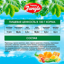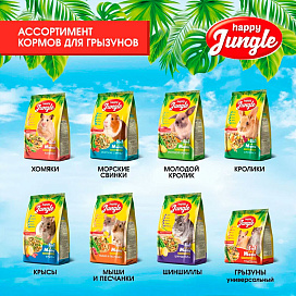 HAPPY JUNGLE – это линейка сухих кормов для грызунов, кроликов и декоративных птиц.