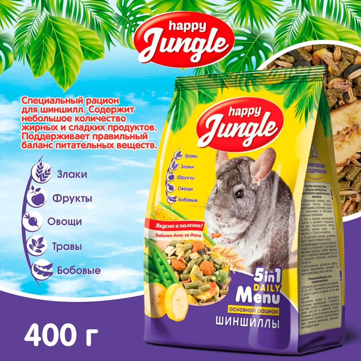 HAPPY JUNGLE для шиншилл (400 гр)