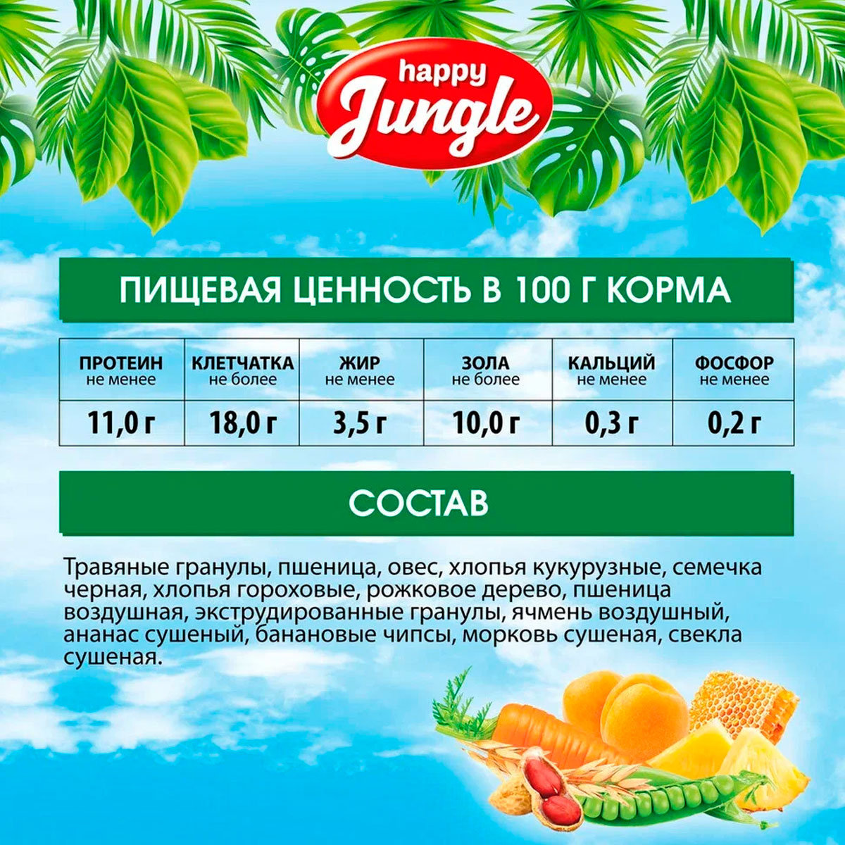 HAPPY JUNGLE – это линейка сухих кормов для грызунов, кроликов и декоративных птиц.
