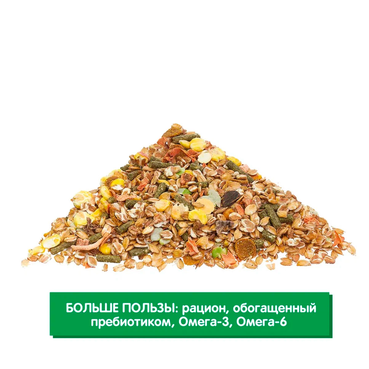 - Особая технология приготовления: Сочетание 5 форм подачи (сырое, вспученное зерно, хлопья, комбинированные и экструдированные гранулы, сушеные компоненты) повышает биодоступность корма и усвоение питательных веществ.