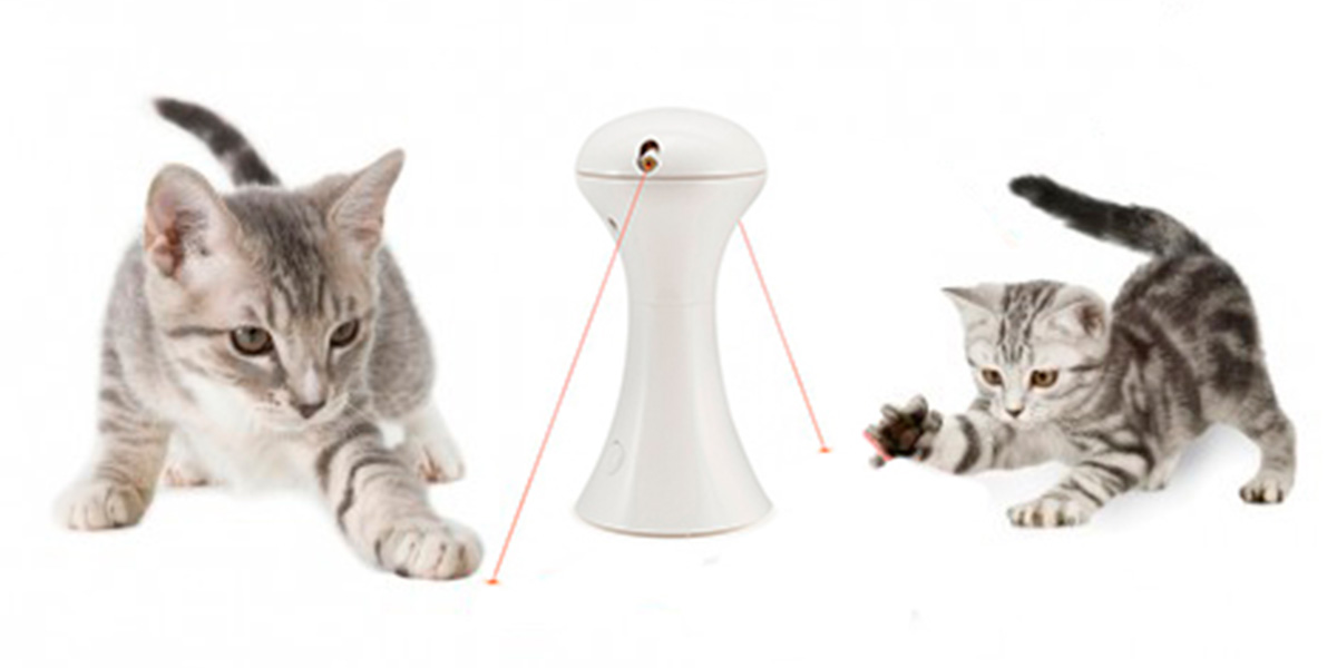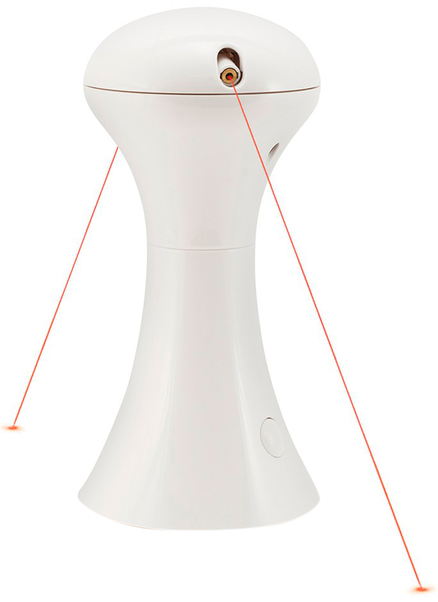 2 лазера движутся по кругу, светят и меняют направление в случайном порядке. Непредсказуемое движение заставляет ваших питомцев ловить, набрасываться и преследовать красную точку. Каждый лазер вращается по кругу с противоположных сторон, поэтому кошки не будут бороться за один и тот же лазер.