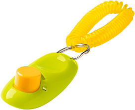Кликер издает щелкающий звук, который используется для привлечения внимания питомца при дрессировке или на прогулке, а так же может быть использован во время проведения показа животного на ринге.