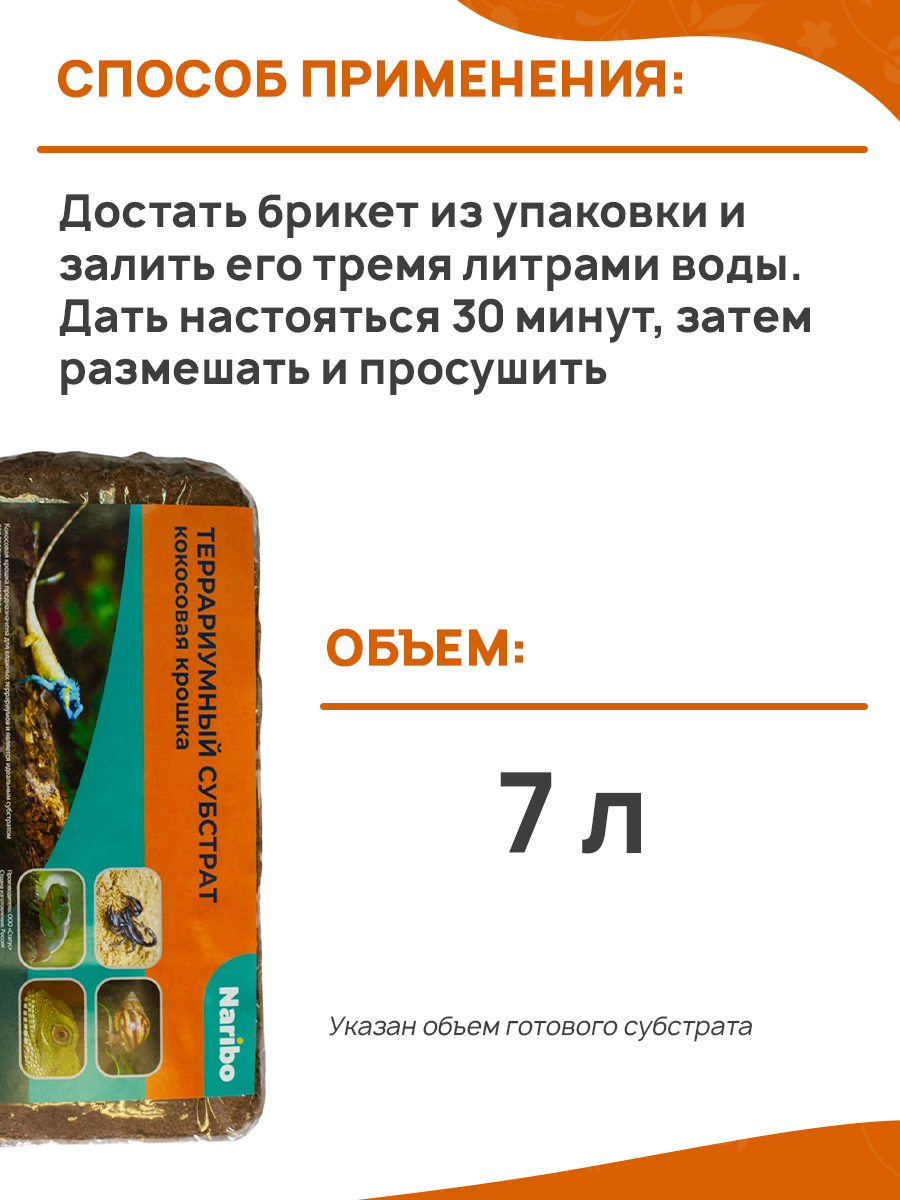 Кокосовая крошка предназначена для влажных террариумов и является идеальным субстратом для тропических животных.