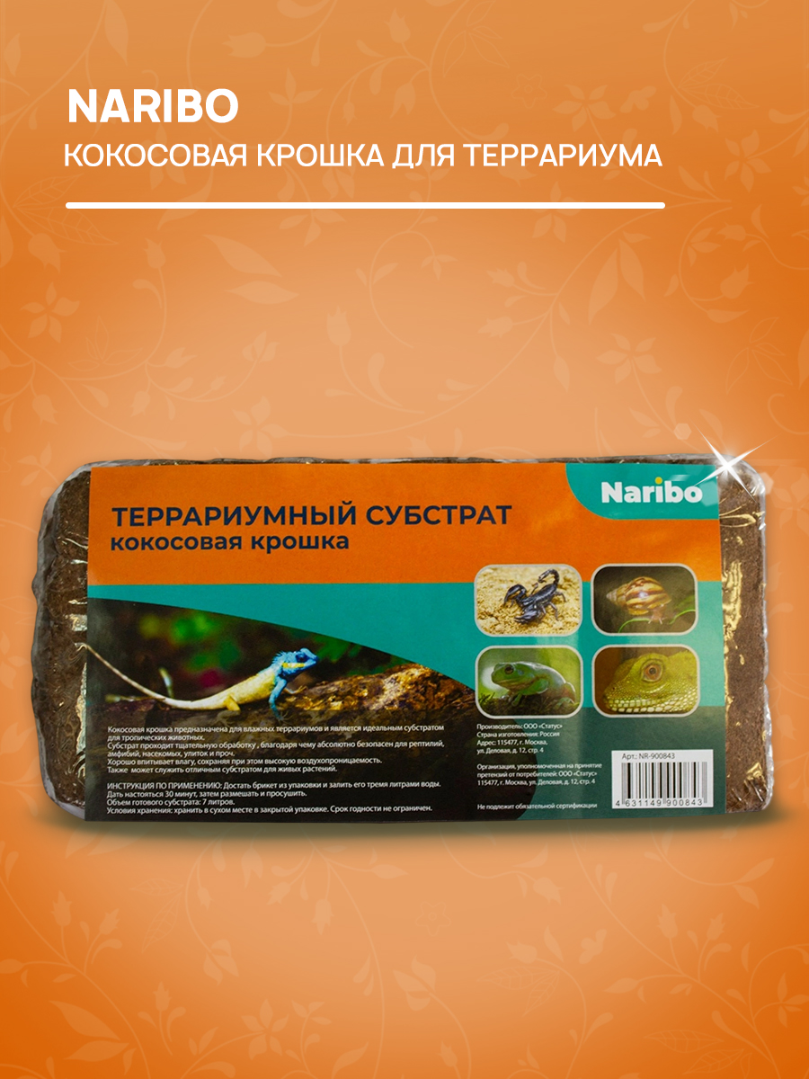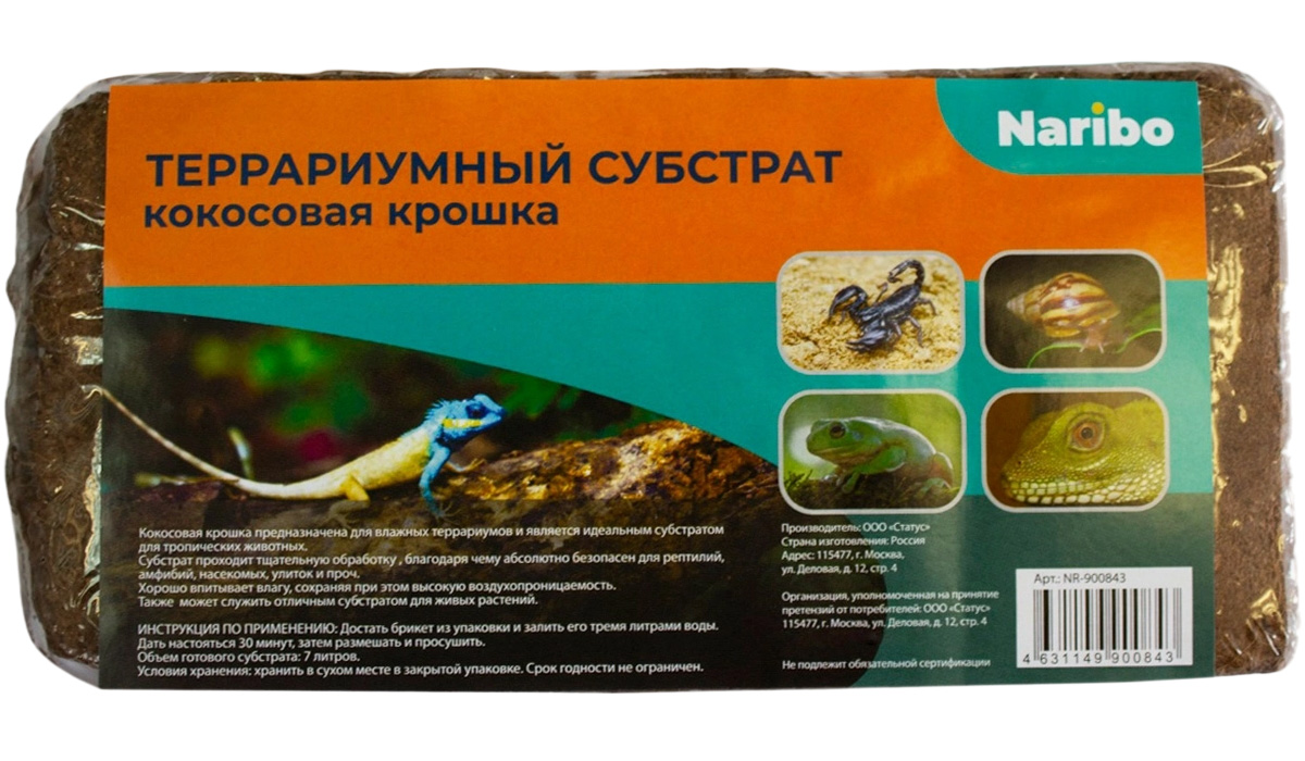 Субстрат проходит тщательную обработку, благодаря чему абсолютно безопасен для рептилий, амфибий, насекомых, улиток.