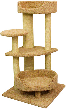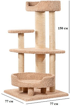 Комплекс Сяпочка – очень компактный, функциональный и элегантный предмет интерьера, обитый ковролином и оснащенный большим количеством когтеточек.