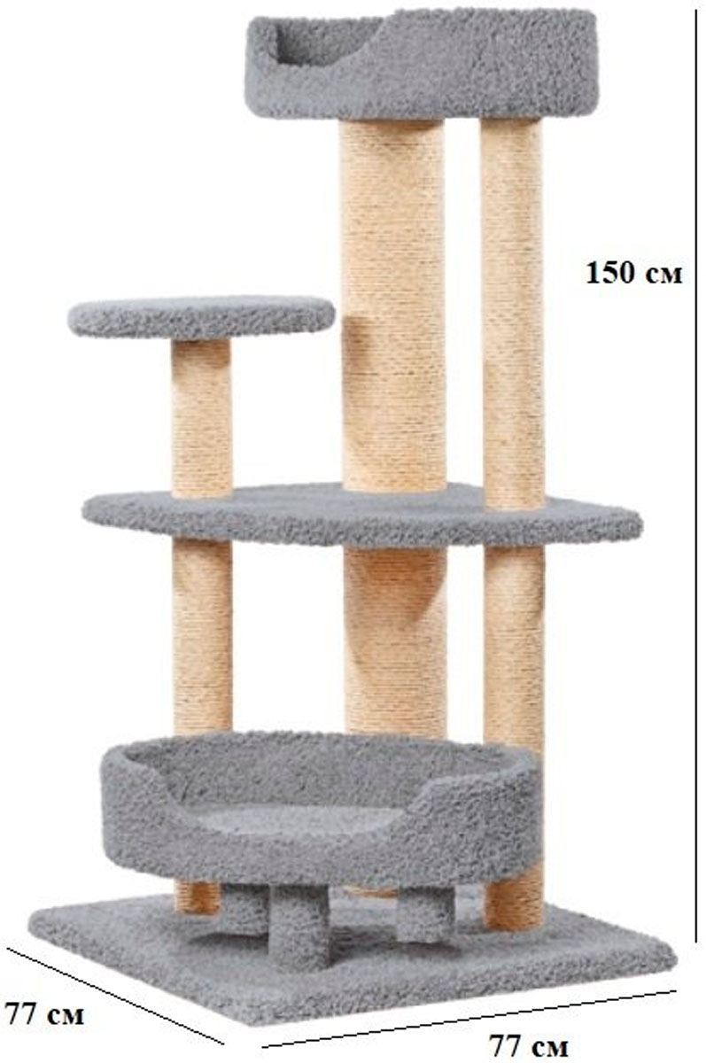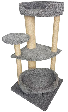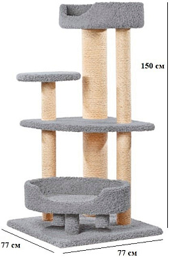 Комплекс Сяпочка – очень компактный, функциональный и элегантный предмет интерьера, обитый ковролином и оснащенный большим количеством когтеточек.
