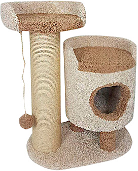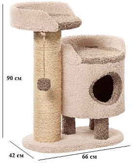 Уютный комплекс, обитый ковролином и оснащенный толстой когтеточкой для Вашего любимца. Наверху удобная большая лежанка, откуда так интересно наблюдать за происходящими вокруг событиями! Внизу – уютный домик, где так хорошо поспать или просто спрятаться.