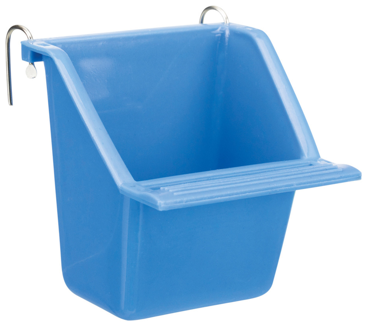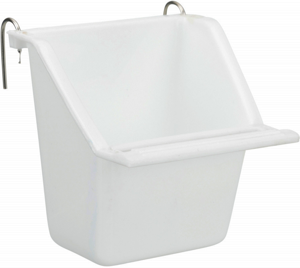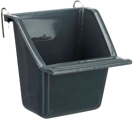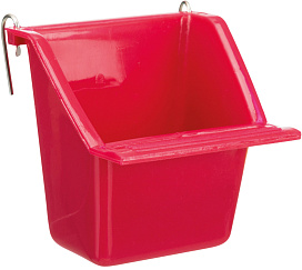 Кормушки крепятся специальными крючками к стенке клетки, плотно фиксируются. В них не попадает мусор, не просыпается зерно. Есть специальная перекладина для насеста для комфорта Вашего пернатого друга.