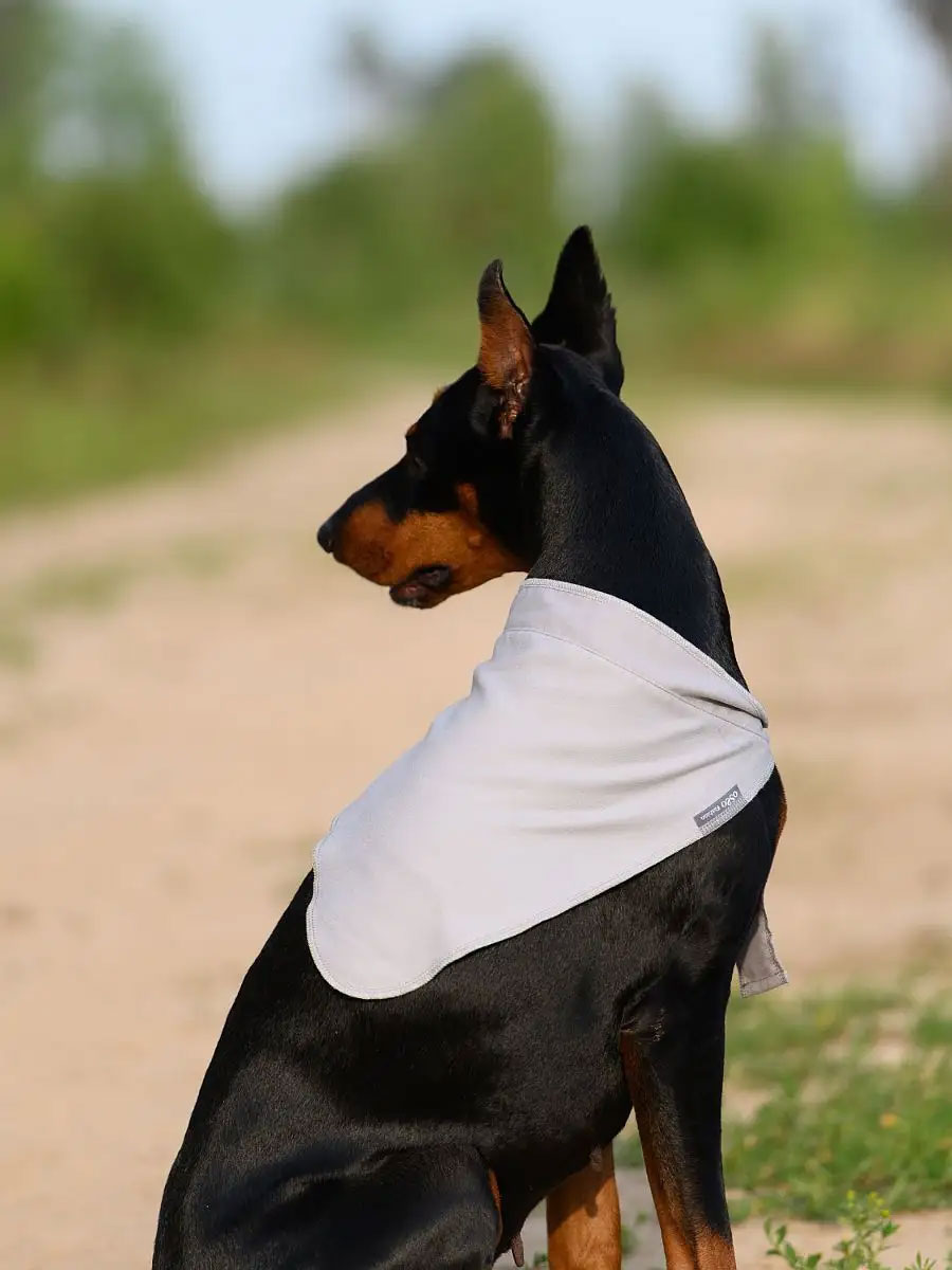 Косынка охладжает шею животного, а завязки помогают регулировать размер.