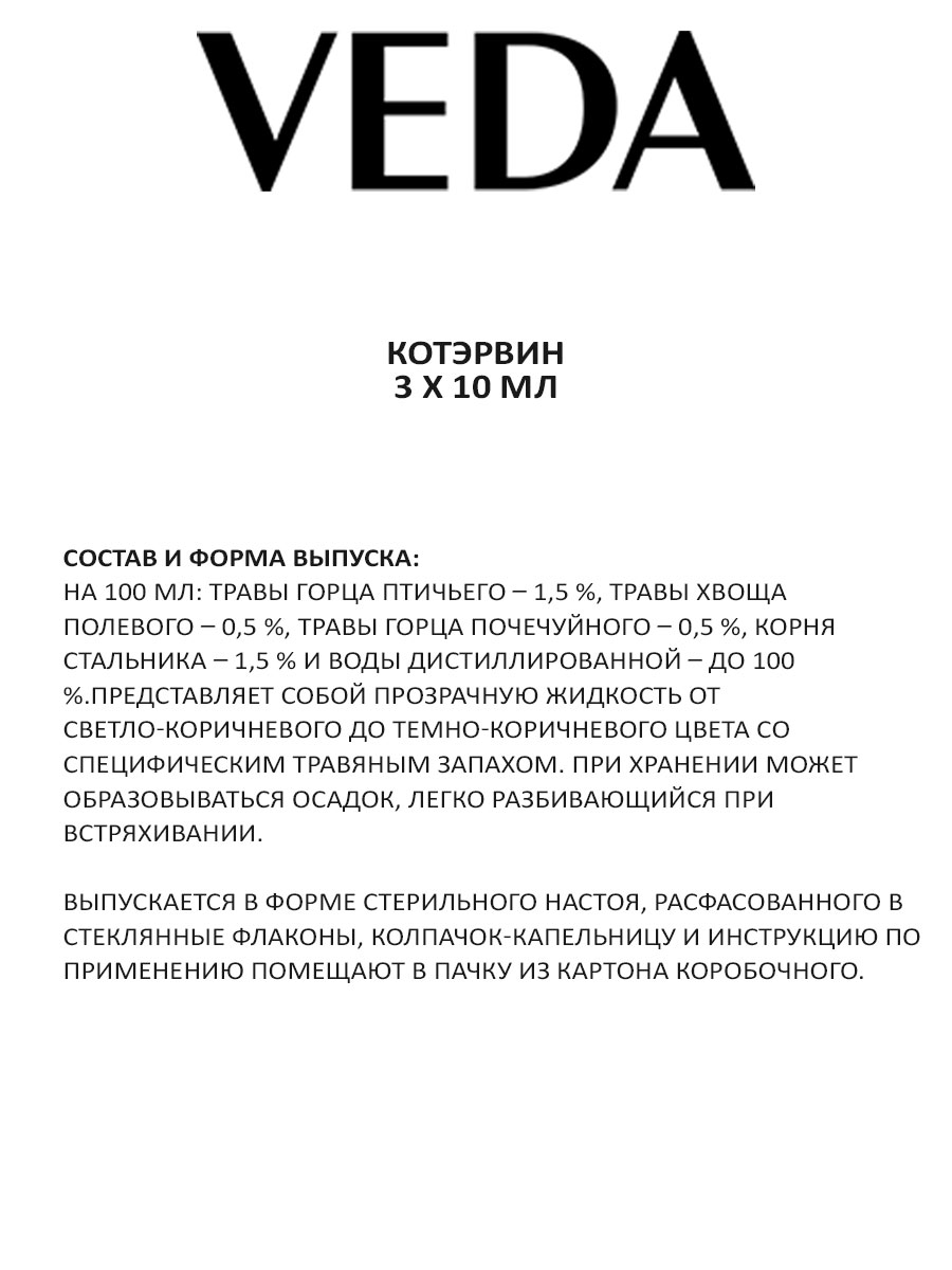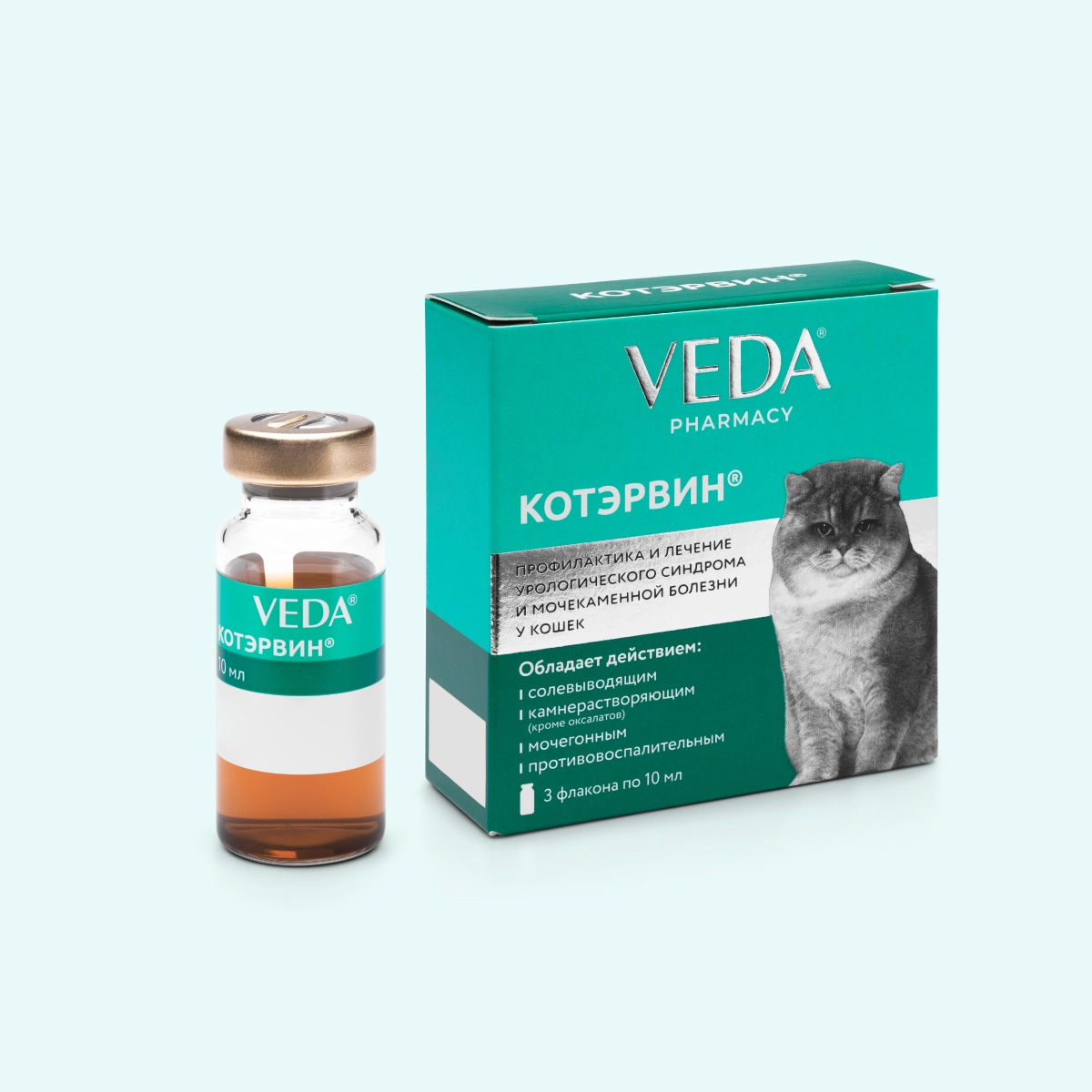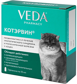 КОТЭРВИН гомеопатический препарат для кошек для профилактики и лечения урологического синдрома и мочекаменной болезни уп. 3 шт (3 х 10 мл)