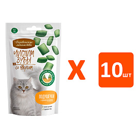 Лакомства для кошек ДЕРЕВЕНСКИЕ ЧИСТИМ ЗУБЫ подушечки с кремом курица 30 гр (1 шт х 10)
