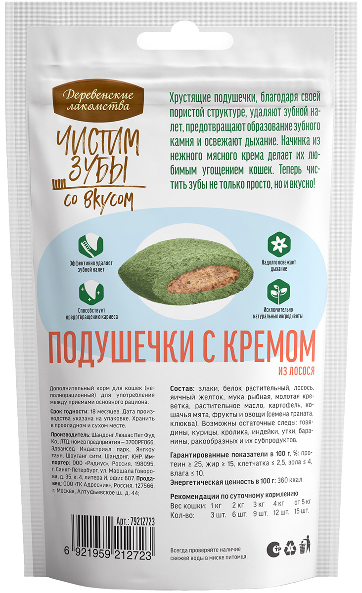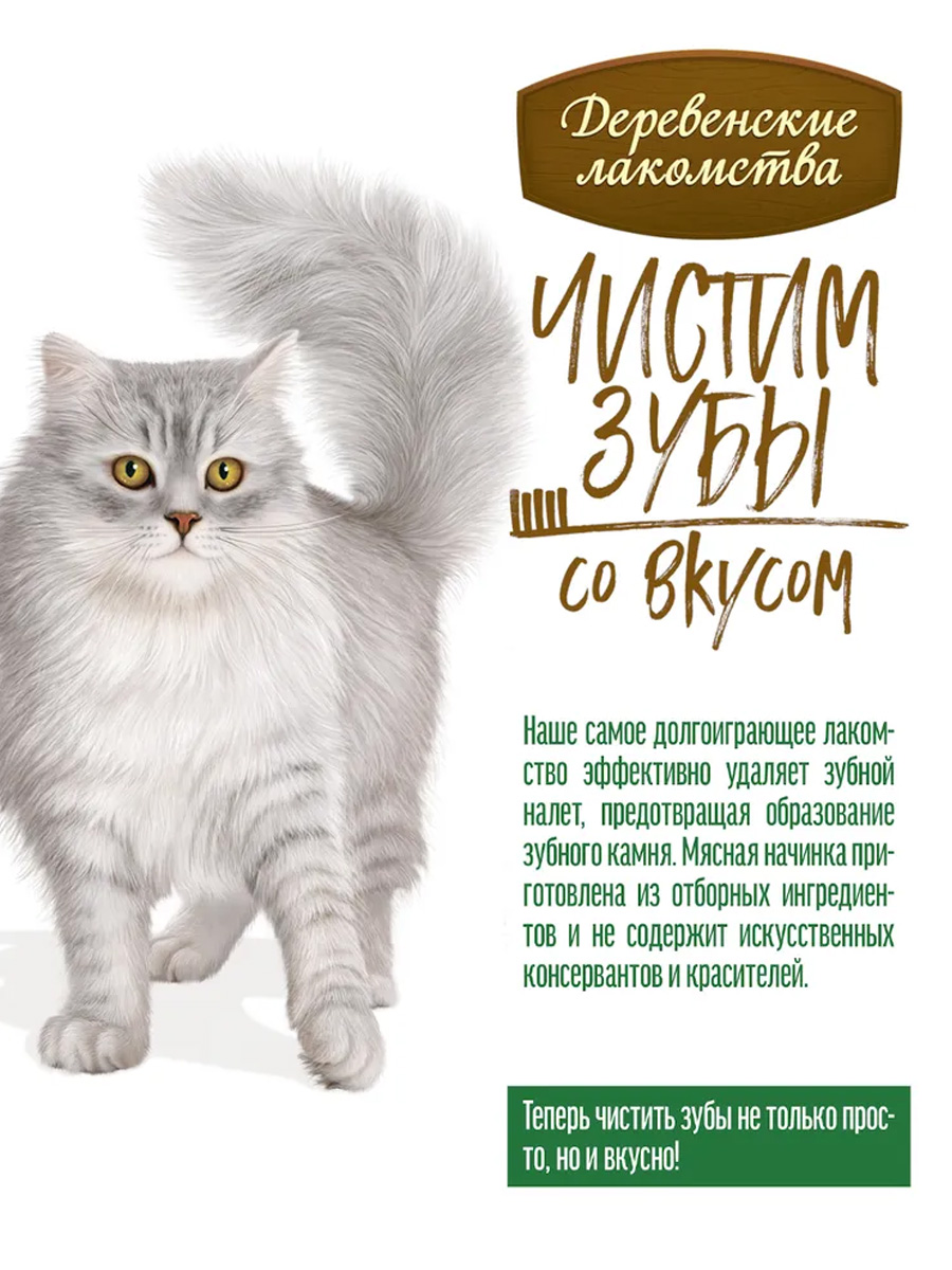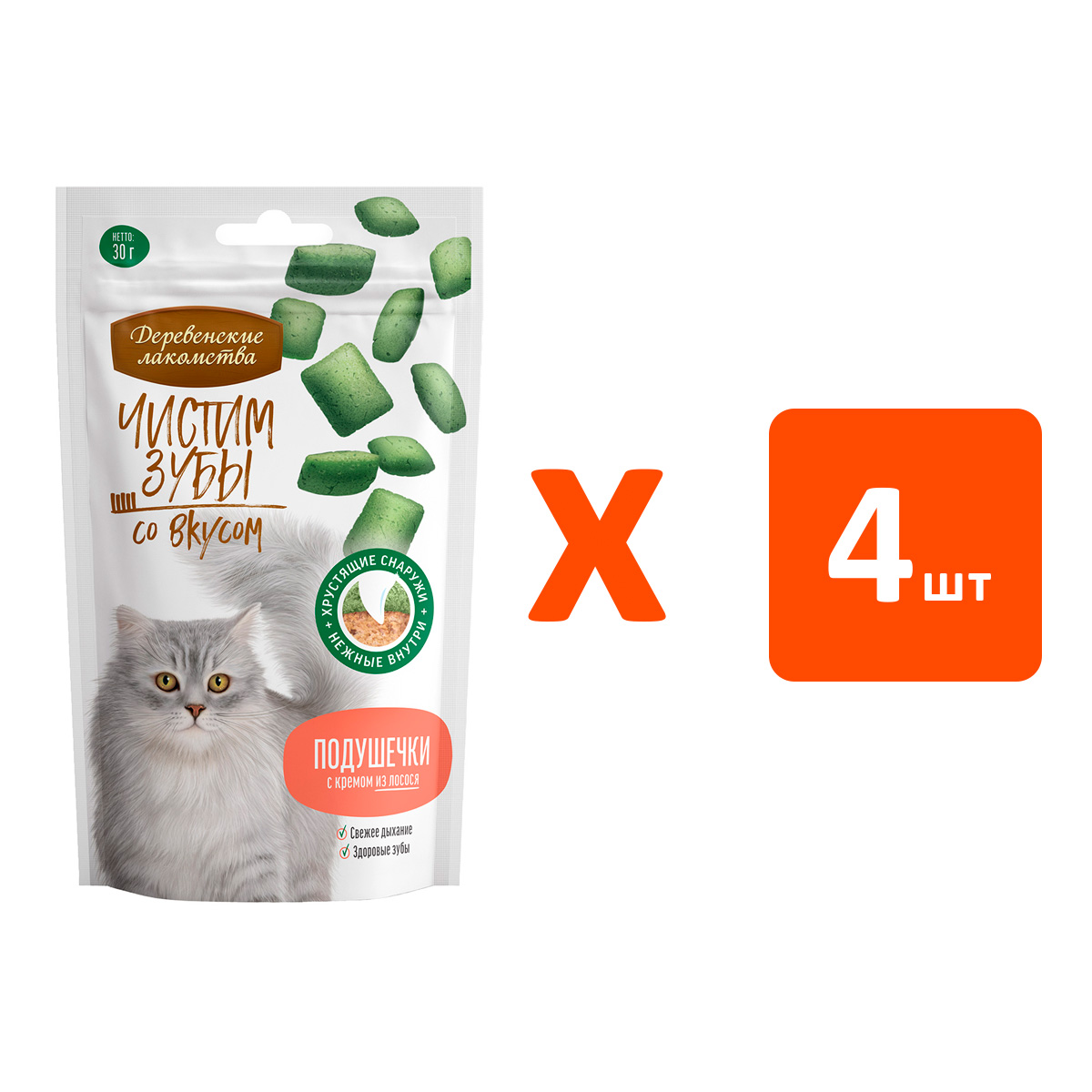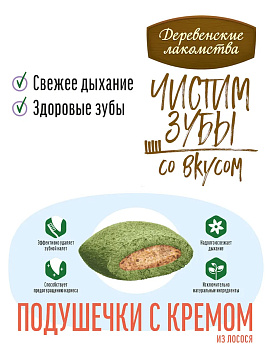 Лакомства для кошек ДЕРЕВЕНСКИЕ ЧИСТИМ ЗУБЫ подушечки с кремом лосось 30 гр (1 шт х 4)
