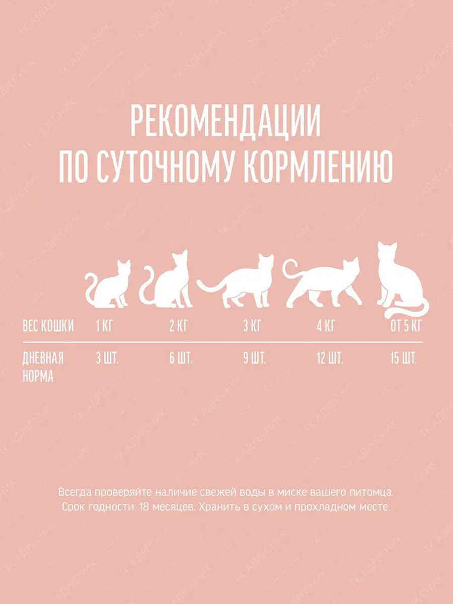 Возможны остаточные следы: говядины, курицы, кролика, индейки, утки, баранины, ракообразных и их субпродуктов.