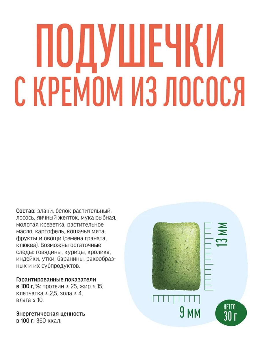 Хрустящие подушечки, благодаря своей пористой структуре, удаляют зубной налёт, предотвращают образование зубного камня и освежают дыхание.