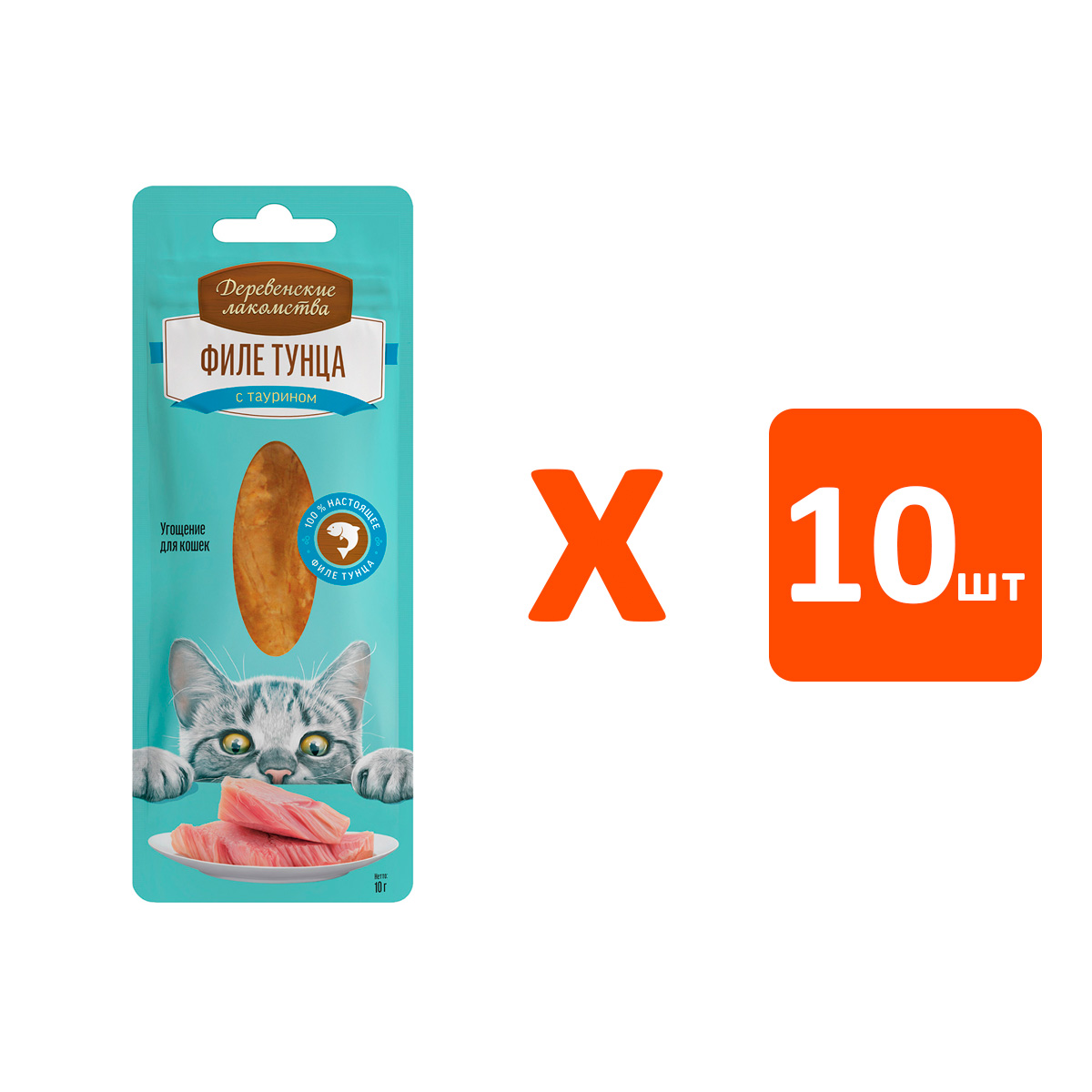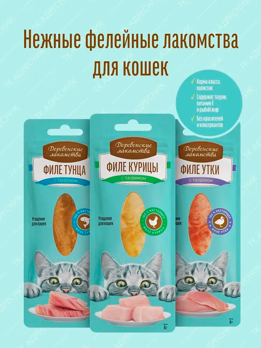 Лакомства для кошек ДЕРЕВЕНСКИЕ филе тунца нежное 10 гр (1 шт х 10)
