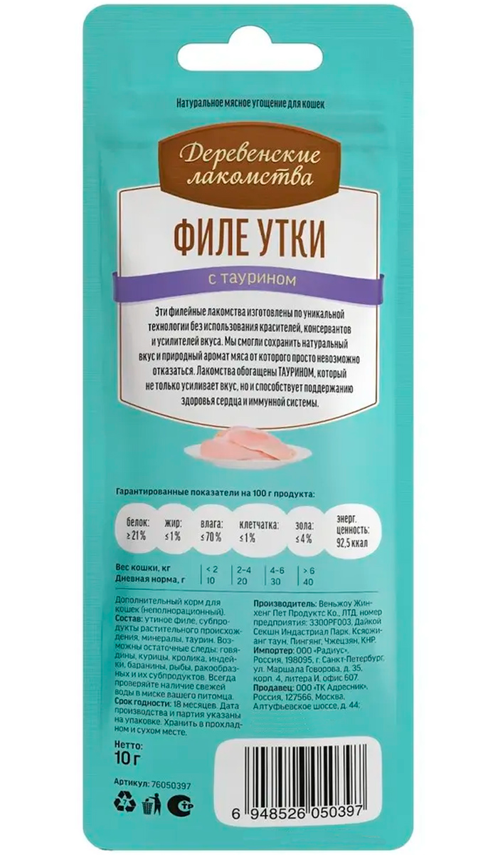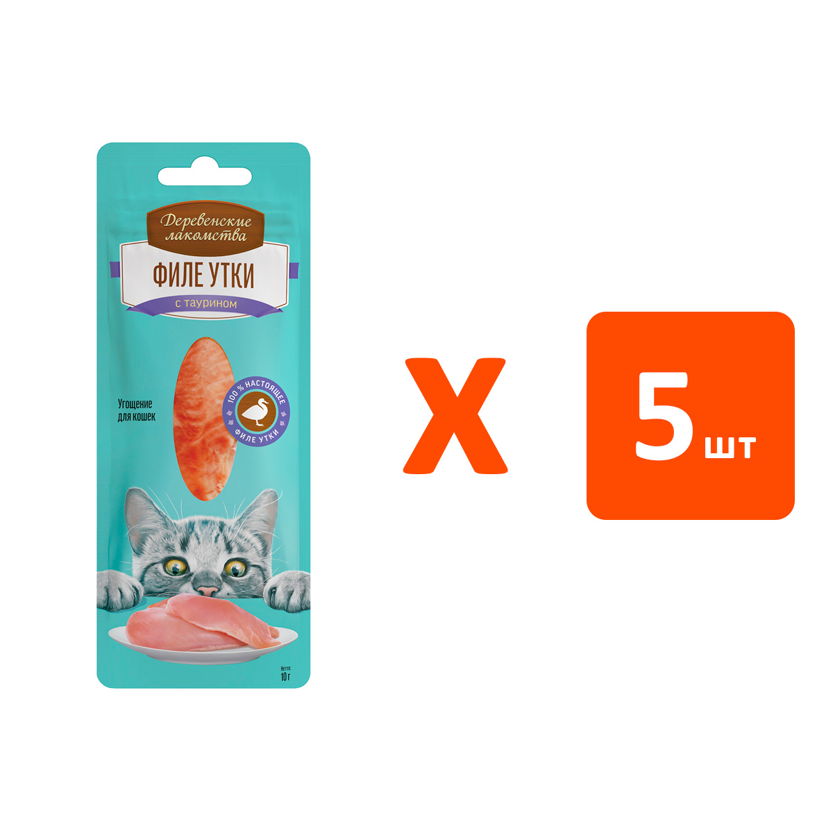 Лакомства для кошек ДЕРЕВЕНСКИЕ филе утки нежное 10 гр (1 шт х 5)