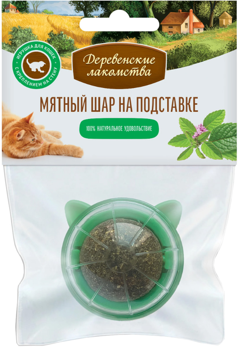Лакомства для кошек ДЕРЕВЕНСКИЕ игрушка мятный шар на подставке (1 шт)